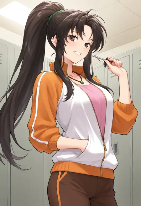 触发词(标准):LayleaFE、黑发、长发、刘海、鬓发、高马尾、发圈、棕眼、头环,