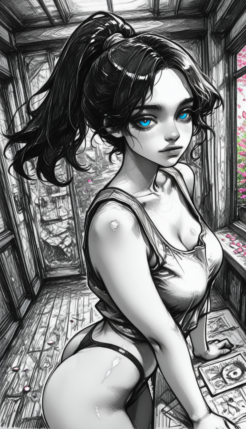 3. P3와 같은 전체 회색조 스케치 스타일: