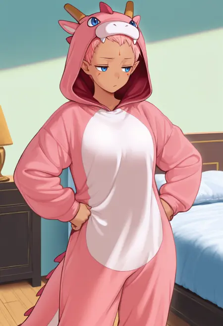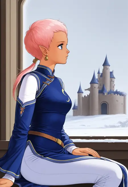 カスタム衣装でポニーテールを含めたくない場合は、"low ponytail" を "very short hair" に置き換えてください。