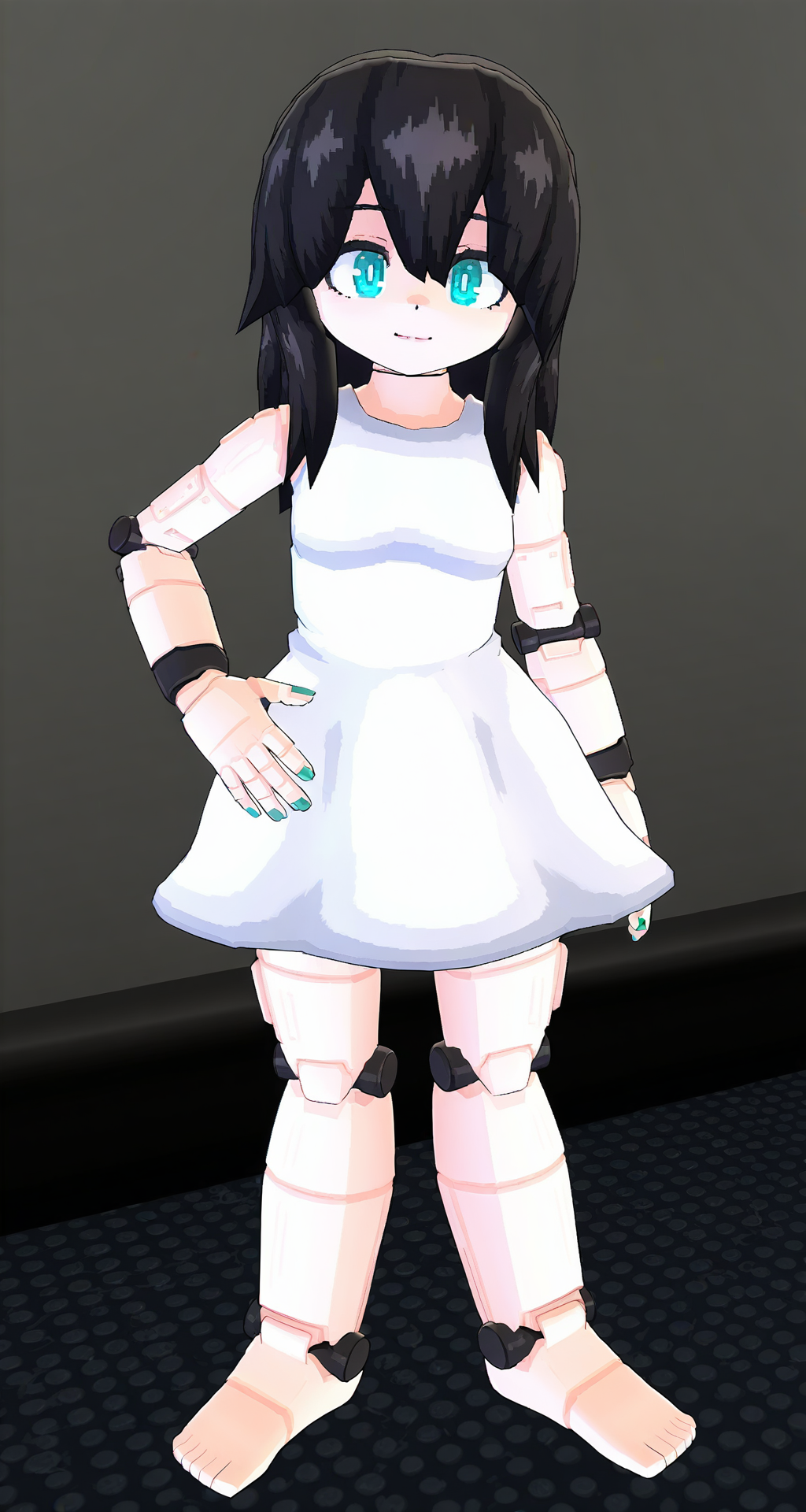 これは、'TWHL:Source'というHalf-Life 2のモッドに登場するロボットの少女です。このモッドでは、プレイヤーは建物を階層ごとに上っていかなければなりません。合計18階があり、各階には素材検出分解器のドアが設置されています。プレイヤーがその階で手に入れたアイテムや物体は、ドアを通過する際にすべて消去されます。プレイヤーが17階に到達すると、修理が必要なマシンガールに出会います。彼女を修理した後、彼女の協力によって次の階のキーカードコードを入手できます。しかし、この少女はプレイヤーを次の階には同行できません。彼女は最終的に「また会えることを願っています…」と語りますが、プレイヤーは結局、屋上にいるレジスタンスメンバーと共に建物を避難します。そのため、このモデルを訓練し、いつでもこのロボット少女に会えるようにしました。皆さんが楽しんでくれることを願っています!