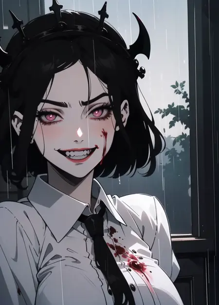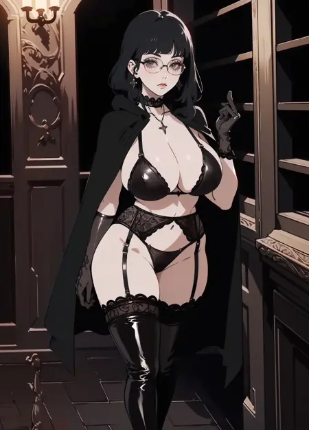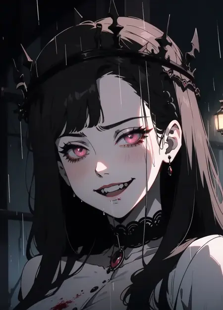 다시 한 번 도미누스 모델을 소개합니다. 이번에는 레트로 모델로, 인터넷에서 보는 미드저니의 뱀파이어/고thic 소녀들과 유사한 결과를 생성합니다. 예를 들어 이 이미지(image)는 제가 재현하려 했던 것입니다. 물론 완벽하지는 않죠. 결국 SD1.5는 미드저니가 아니니까요.