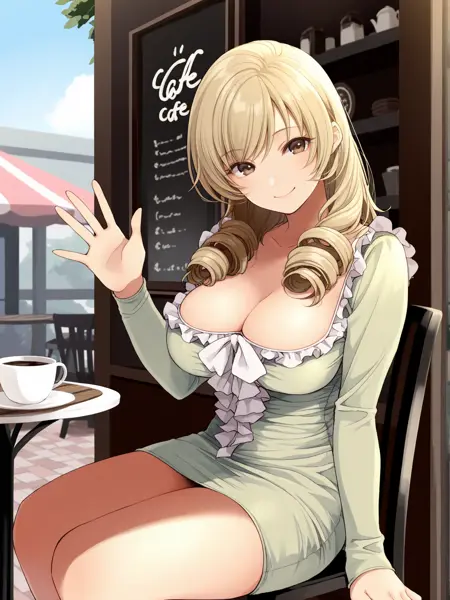 外观:misoraari,金发,长发,双马尾,棕眼,大胸部