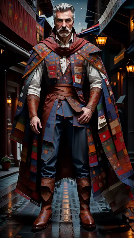 my best attempt at Thom Merrilin and his gleeman cloak.