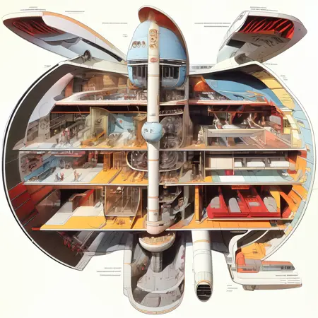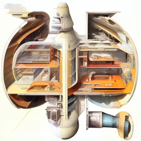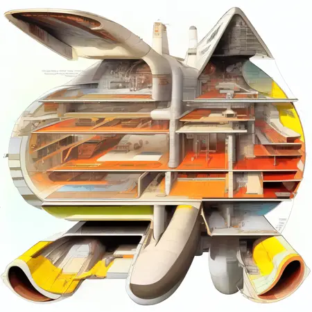 이 모델은 1970년대 미래주의 건축 스타일의 컷아웃을 생성합니다.