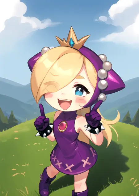 복장(보라색): 보라색 드레스, 팔꿈치 장갑, 보라색 장갑, 부츠, 보라색 신발, 날카로운 팔찌, 보라색 머리장식