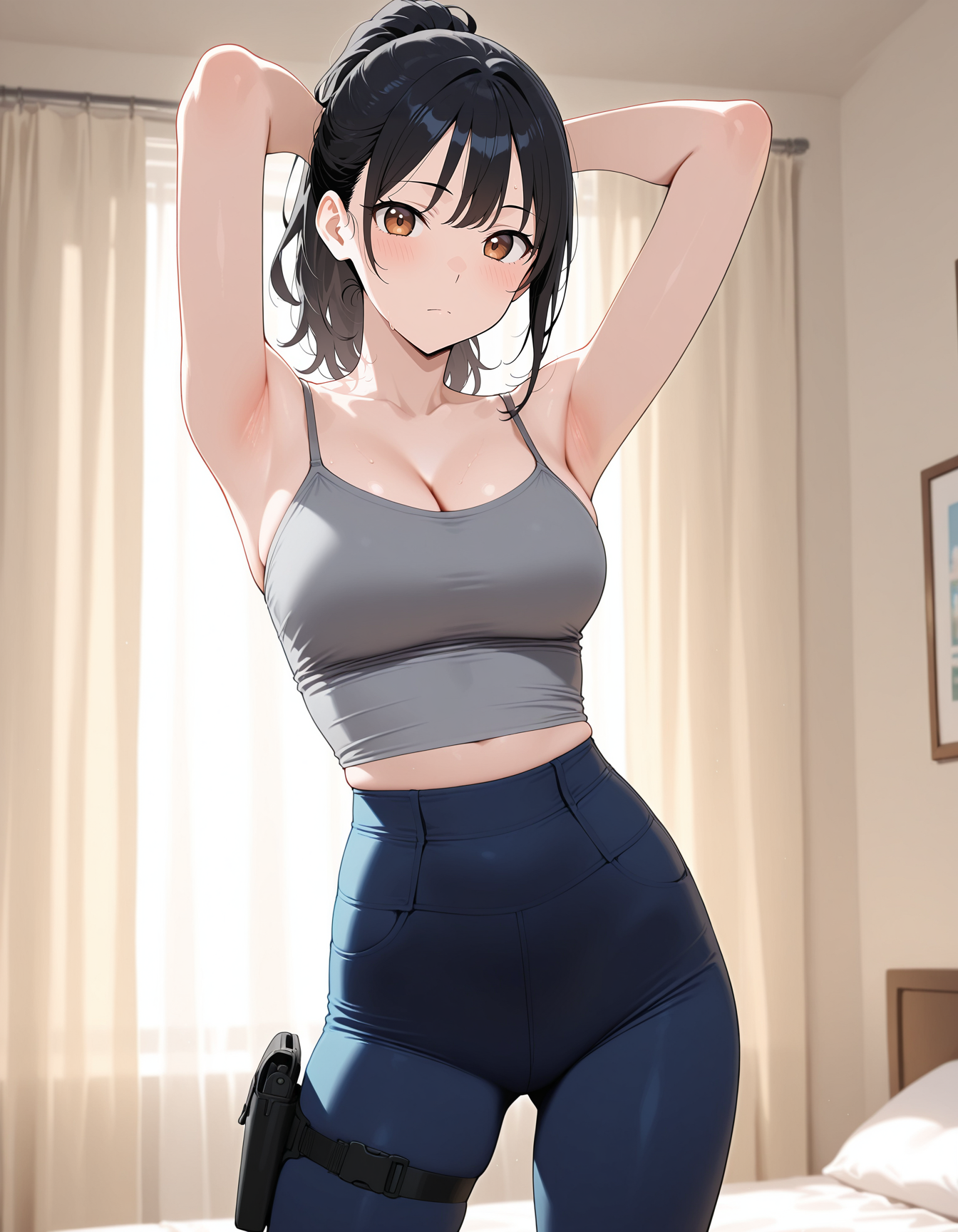 A mini sized LoRA model with simple yoga suit worn by BJ.