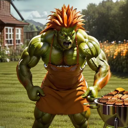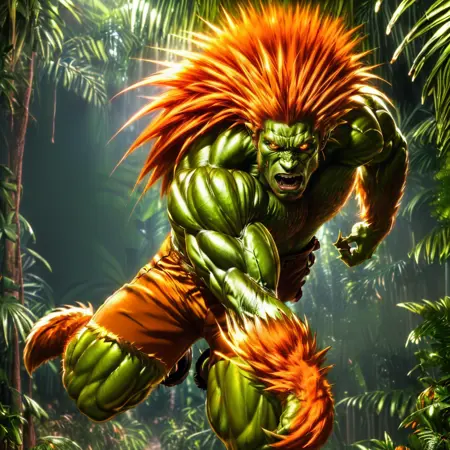 • Trigger : blnka, long hair, colored skin, green skin, monster boy, claws, fur, shorts, fur trim, fangs, cuffs, chain