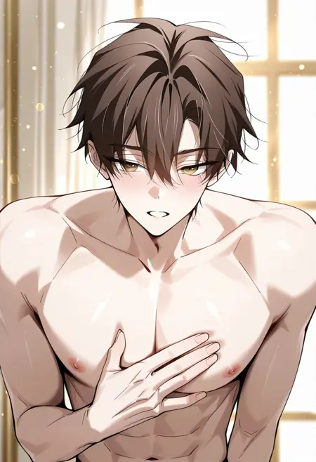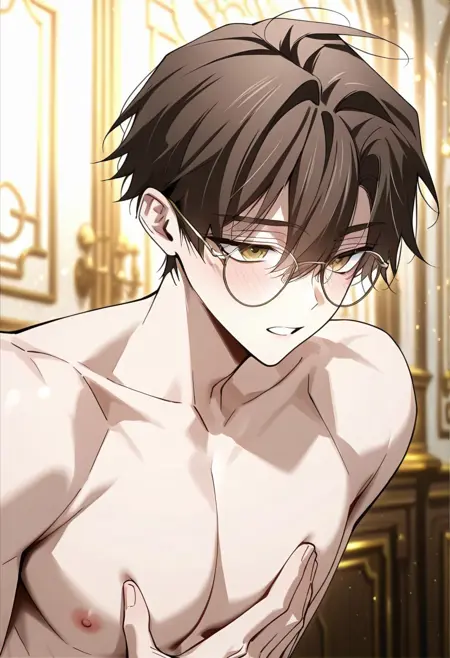 1boy, baek yu seol, brown hair, short hair, yelow eyes, hair between eyes, white shirt, jacket, blue necktie, vest, school uniform.강도(