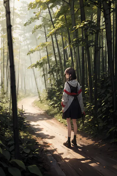 可选词:天空、月亮、夜晚、白天、土路、风景、雪、……