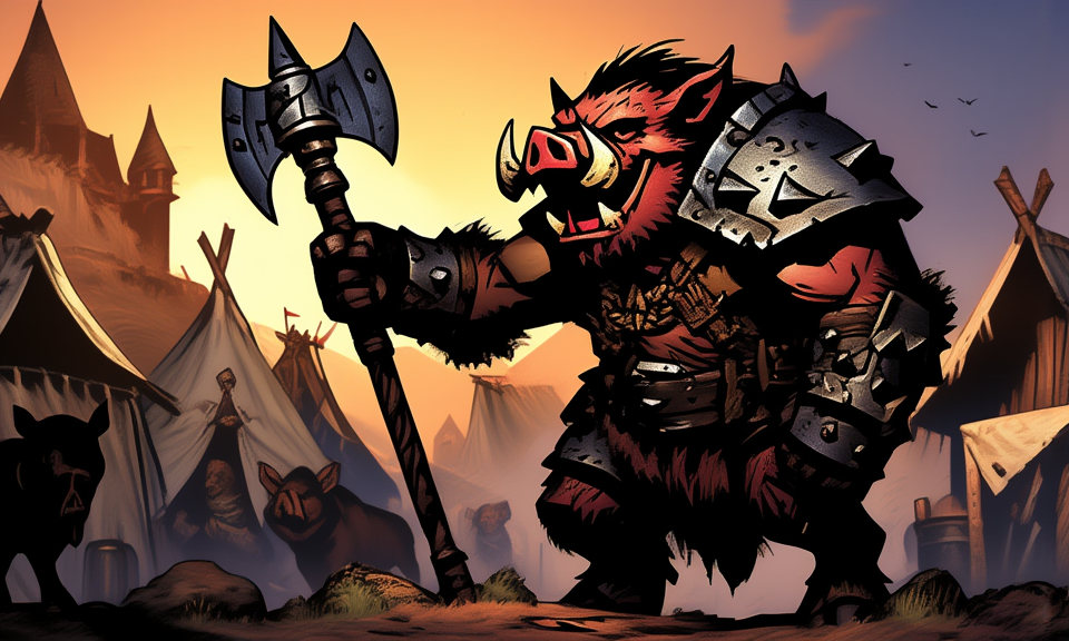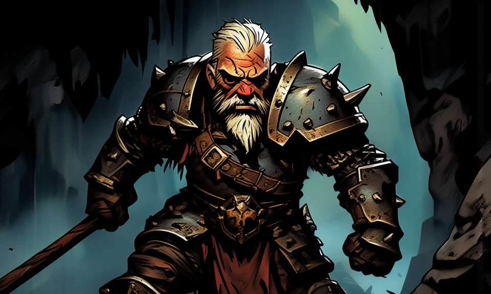 Darkest Dungeon风格,粗厚的漫画轮廓与侧光效果,高清晰度的明暗对比,鲜艳色彩与平涂阴影