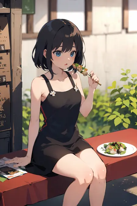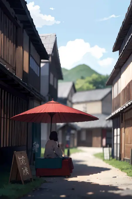 在102张图像上训练而成。该模型主要用于生成主要销售和果子(日式甜点)的日本店铺场景。红色布料覆盖的长椅可通过“坐着”来触发。这个LoRA与我的Hitozato(村庄)LoRA配合效果极佳。如果你不想要奇怪的食物,只需不在提示词中加入即可。