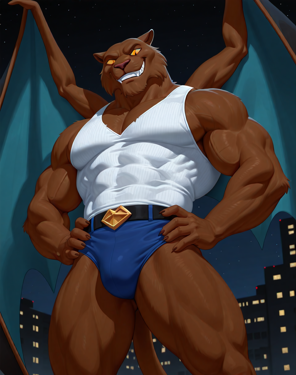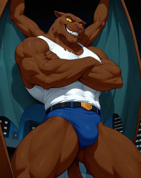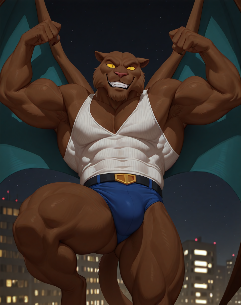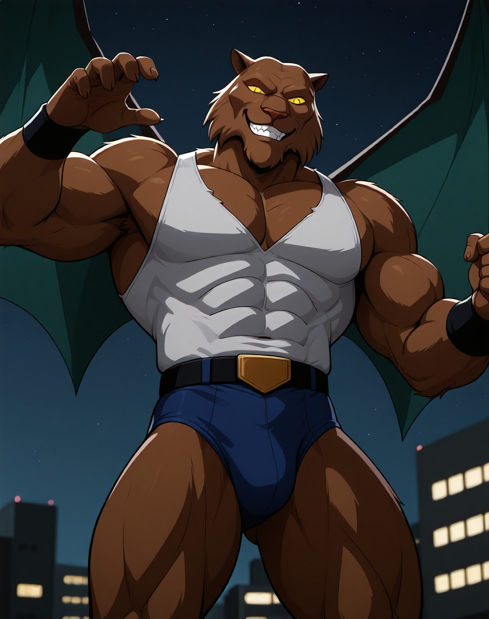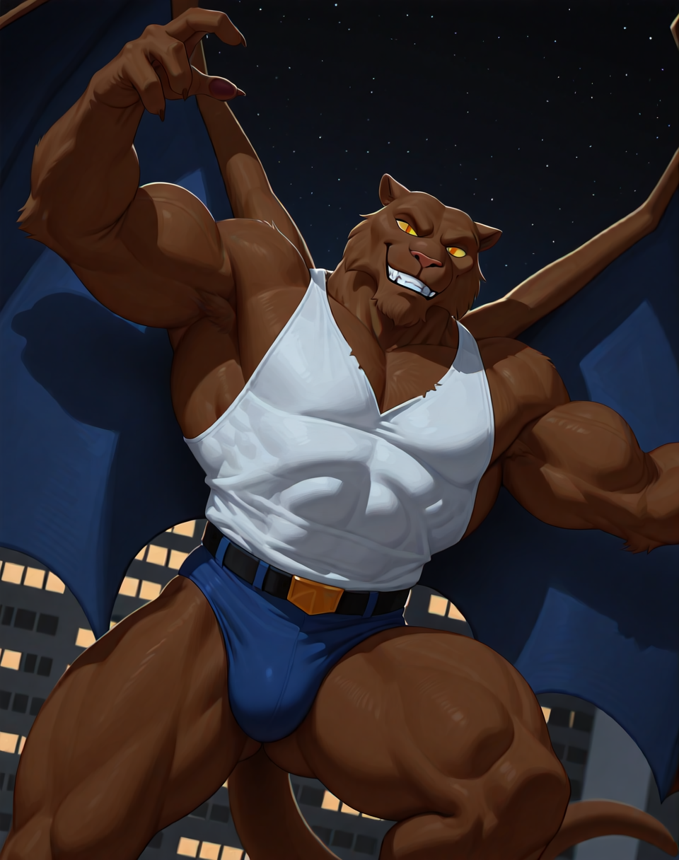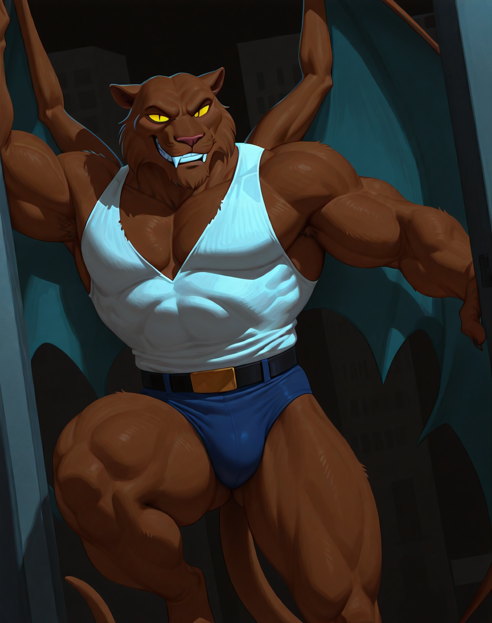 Prompts for this lora are ( Fang, muscular, gargoyle, cougar, ).