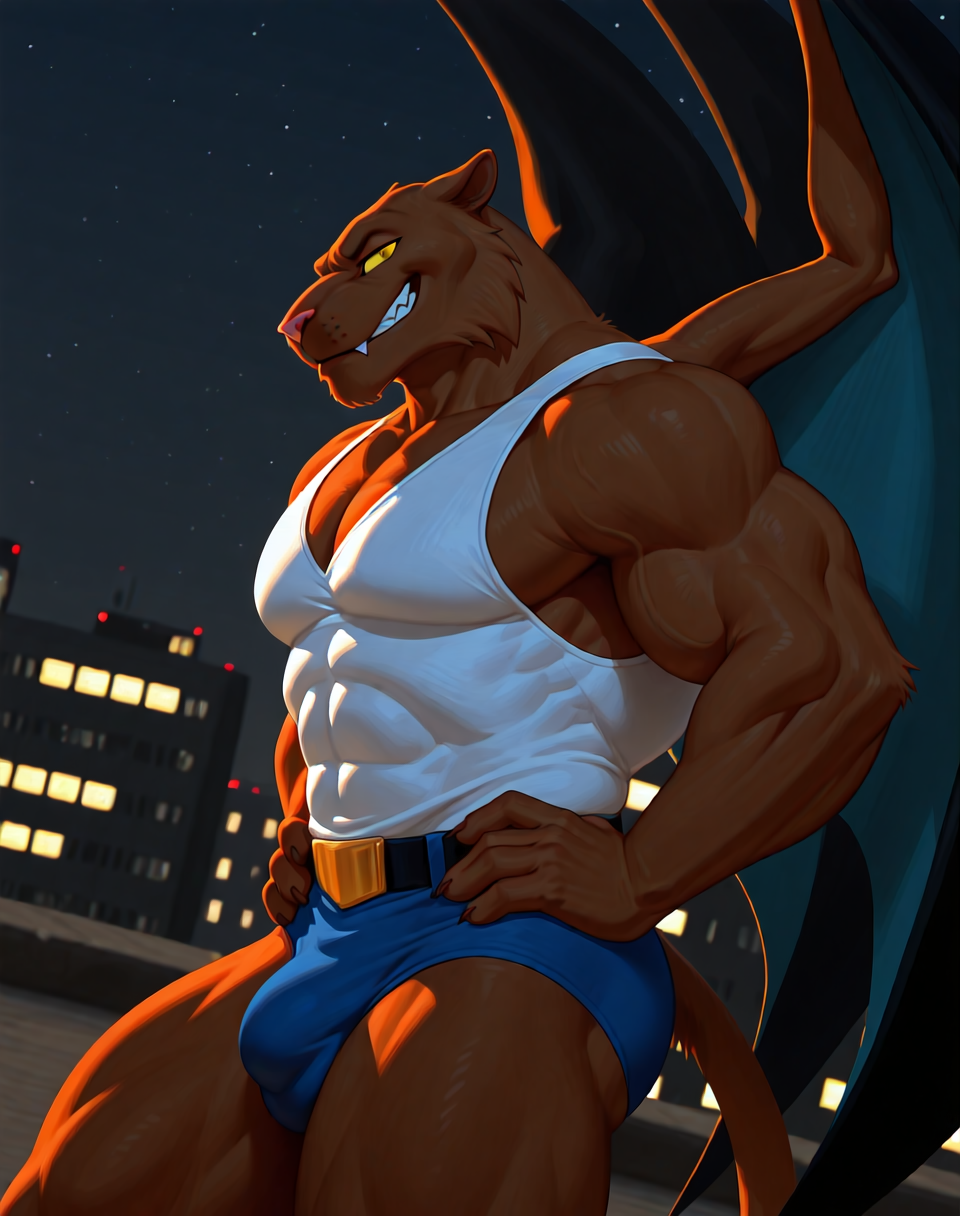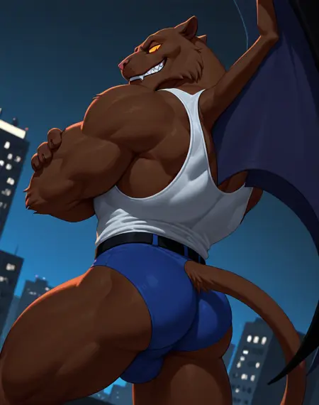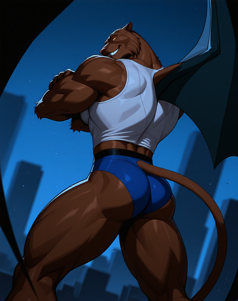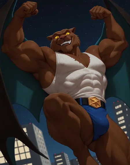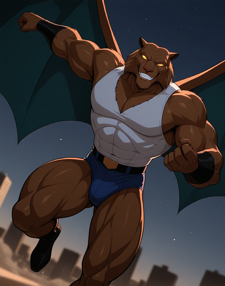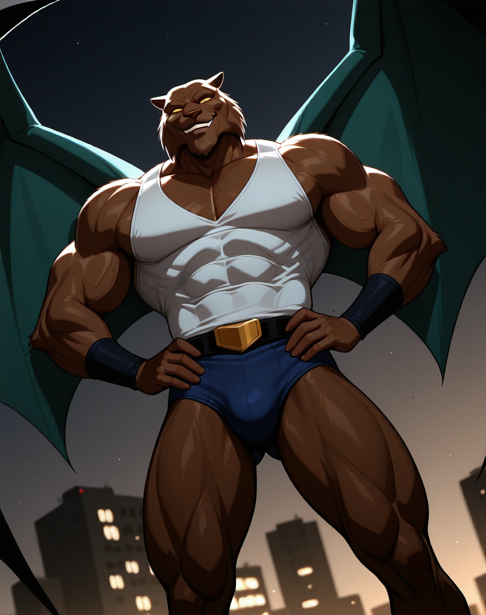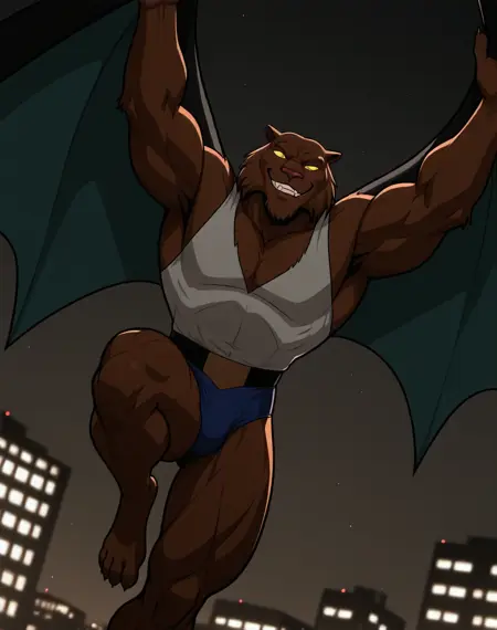 Prompts for this lora are ( Fang, muscular, gargoyle, cougar, ).