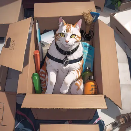 最佳效果搭配纸箱木箱。但你可以尝试其他容器,但这取决于你的提示和运气。姿态会存在。