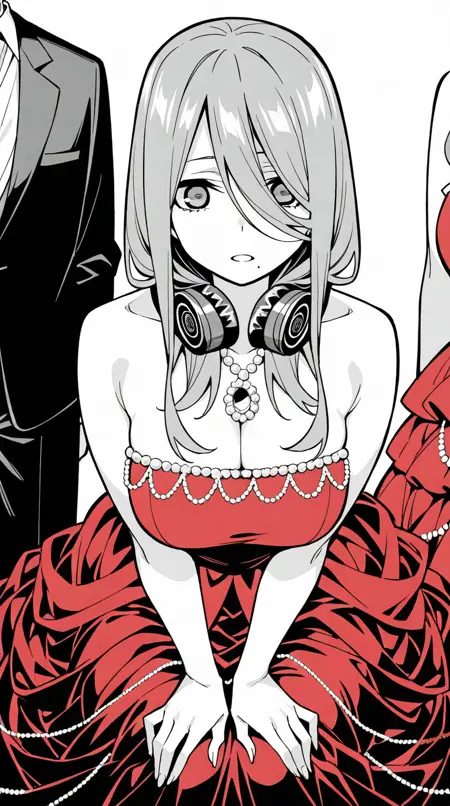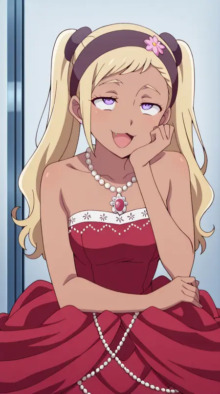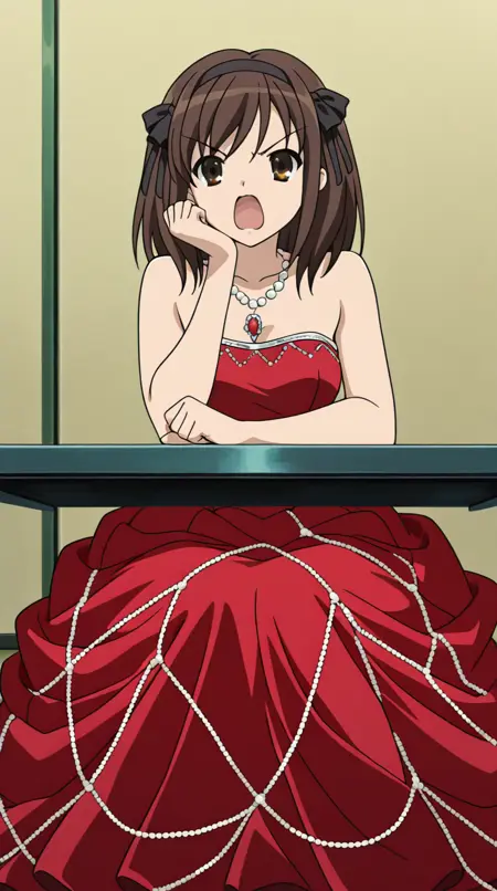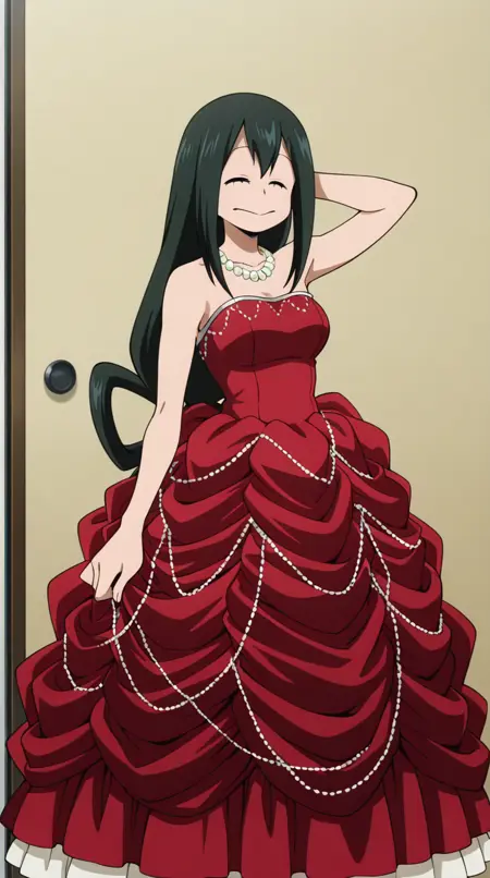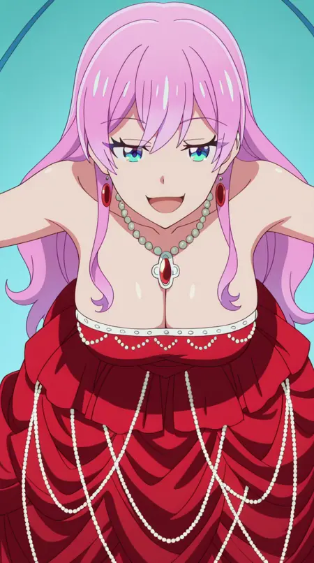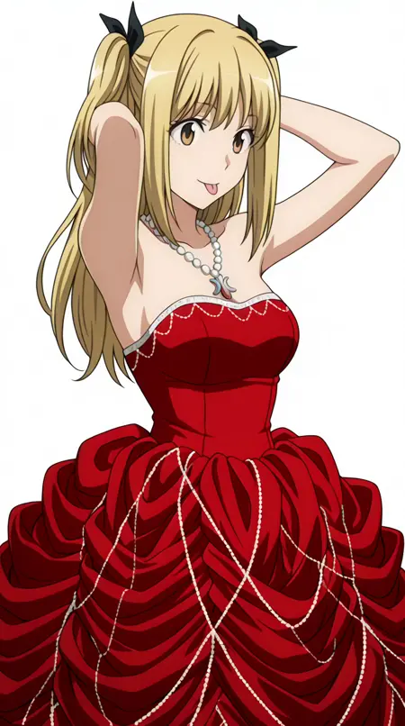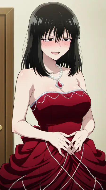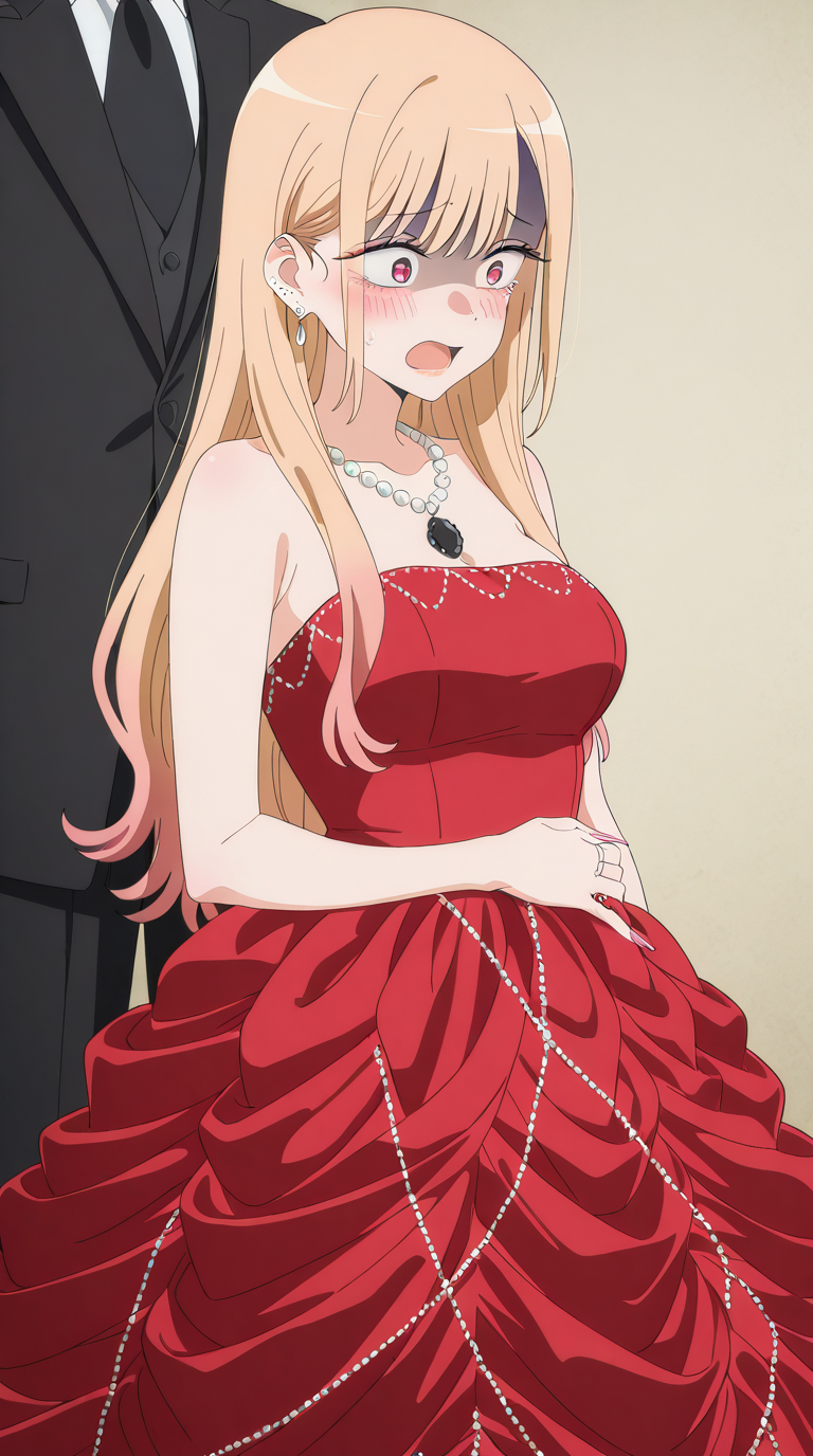 lora:rintohsaka10thanniversary-illustriousxl-lora-nochekaiser:1, rintohsaka10thanniversary, 单人, 连衣裙, 珠宝, 露肩, 项链, 无吊带, 红色连衣裙, 无吊带裙, 珍珠项链, 红色礼服, 正式, 珍珠装饰, 珍珠裙, 层叠裙