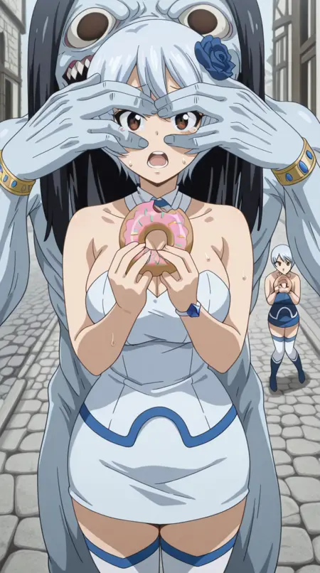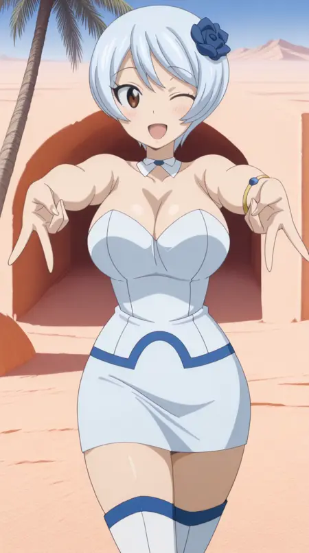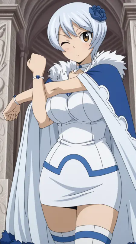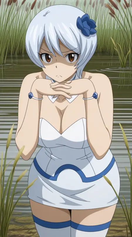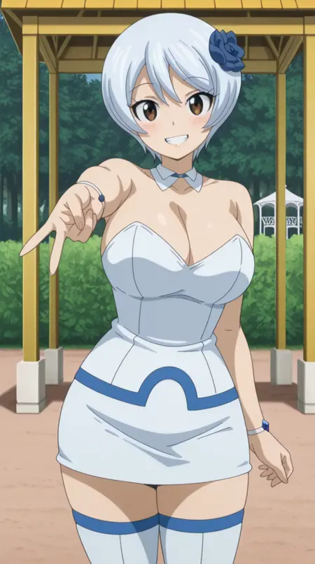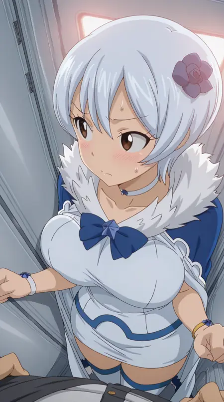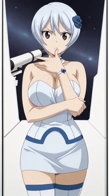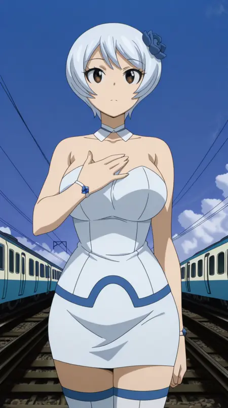 yukino agria, 단발, 갈색 눈, 흰색 머리, 성숙한 여성, 큰 가슴, 애니메이션 스크린캡