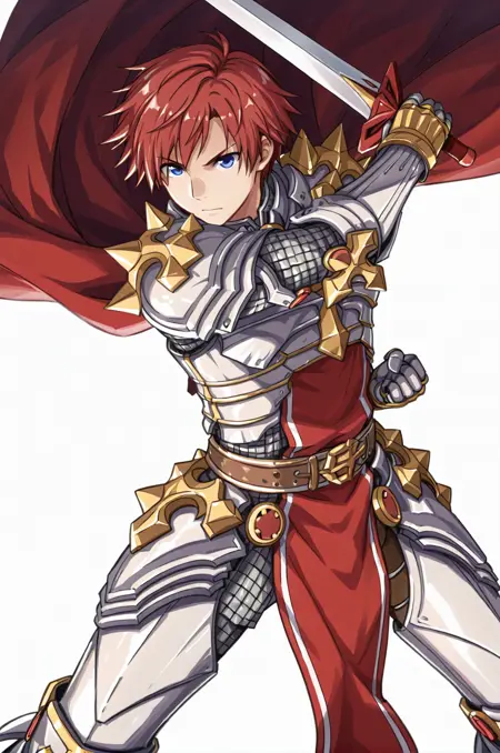 prompt: runeKnightROMale, full armor, cape, chainmail, gauntlets, shoulder armor, breastplate, pelvic curtain, tabard, belt, pants, leg armor, greaves