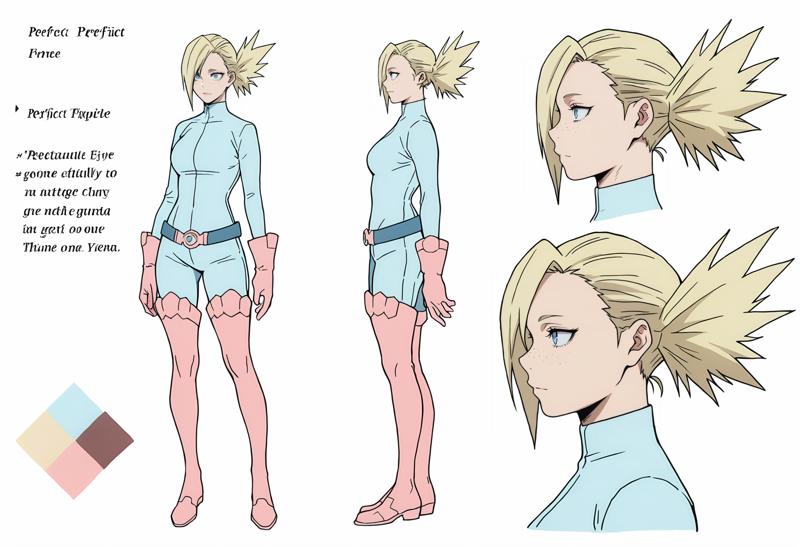 1个女孩,蓝色眼睛,雀斑,金发,短发,马尾