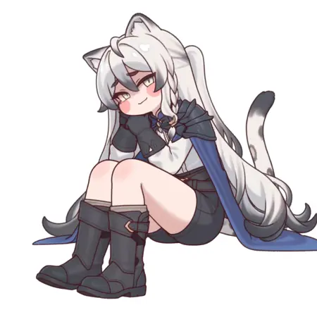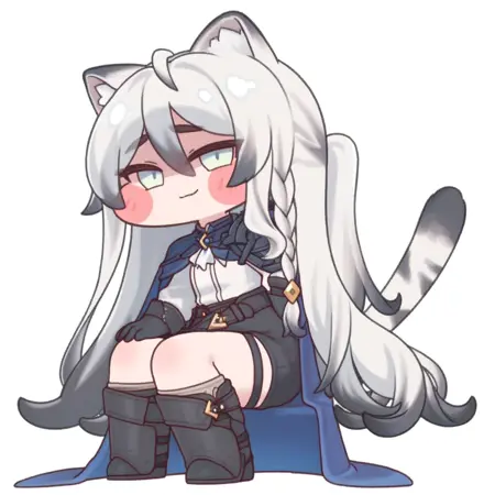 태그: 1소녀, 솔로, 치비, 동물 귀, 솔로, 매우 긴 머리카락, 눈, (검은 동공:1.1), 부츠, 검은 신발, 검은 반바지, 미소, 망토, 다채로운 머리카락, 꼬리, 흰 셔츠, 꼬리, 땋은 머리, 검은 장갑, 보는 이를 바라봄,