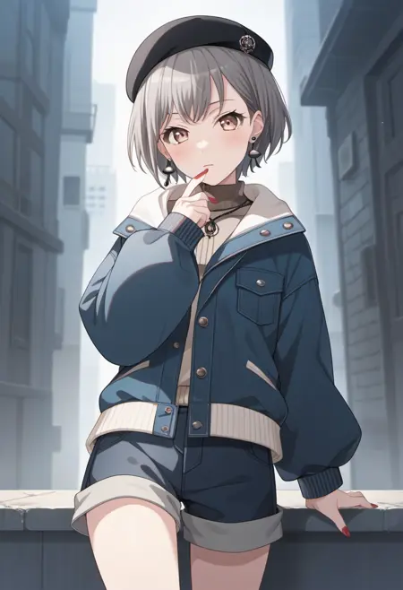 :takamatsu tomori,短发,棕色眼睛,灰发