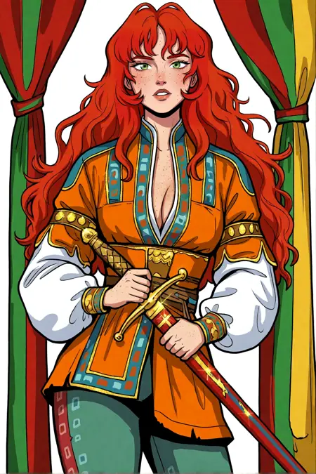 American Comic Style: Characterized by bold, crisp black outlines and blocky shading techniques, infused with the rugged aesthetic of Western comics.