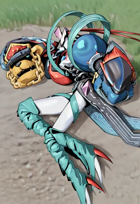 Ahhh...the results of the LoRA training haven't been superb, and I knew this Digimon was going to be a tough nut to crack just due to how asymmetrical it is. Going by the prompt-adherence so far, it's fine picking up various other details -- just not the main ones. Most likely I need to flesh out the dataset some more, and rethink the tagging structure.