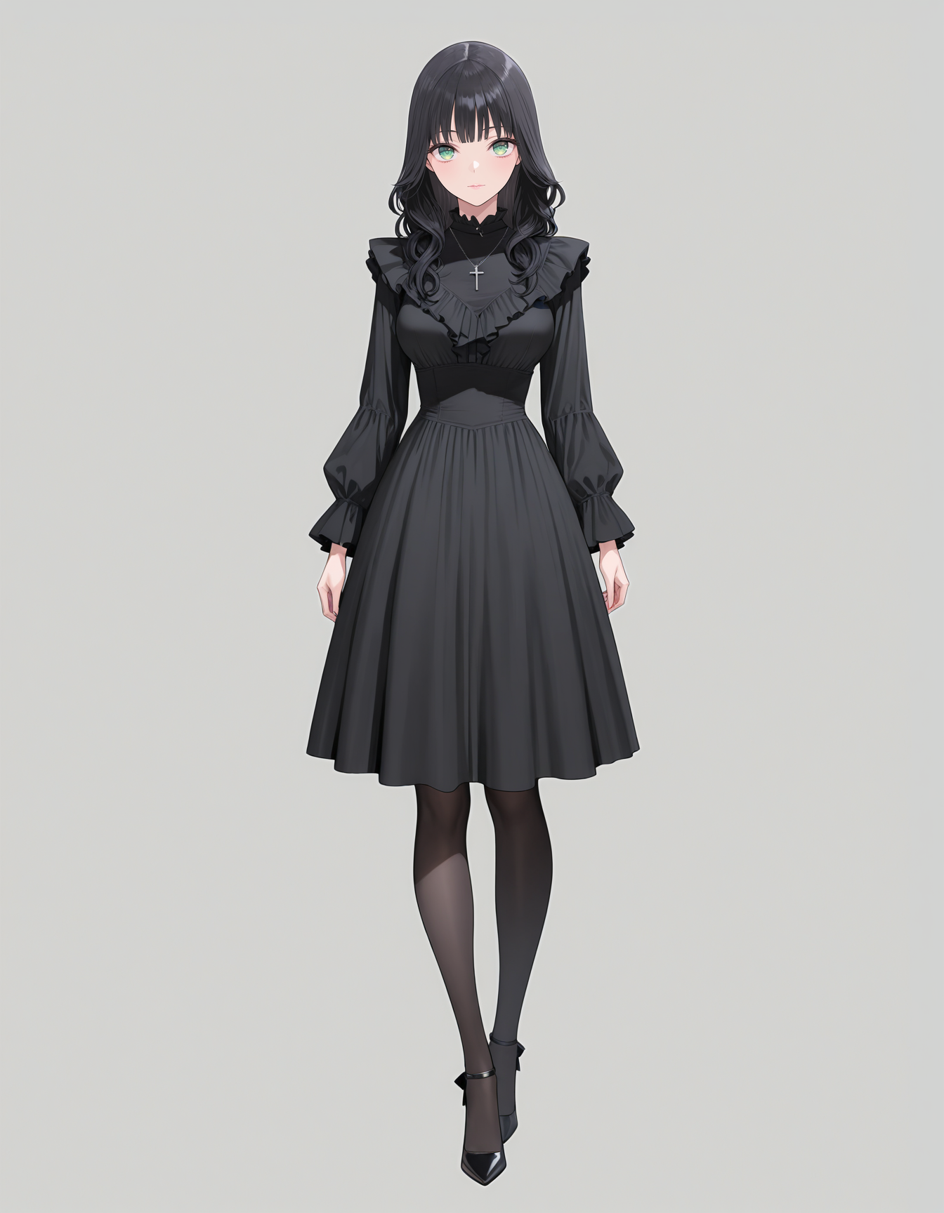 mai_mdsh,mai_hisuimd,long_hair,black_hair,green_eyes,aged_up,skinny,shirt,long_sleeves,long_skirt,socks,high_heels