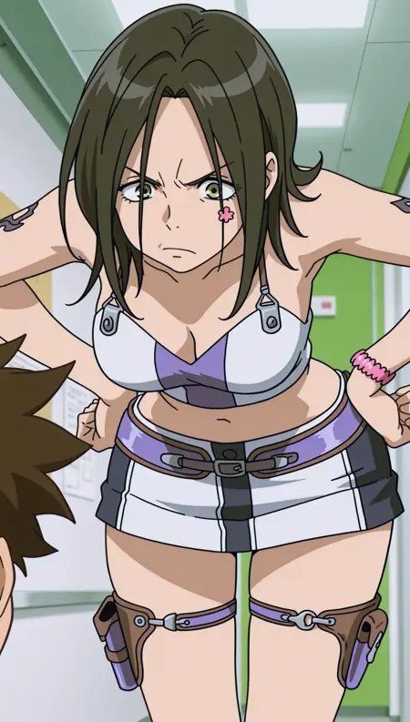 Optionnal Words: belt, miniskirt, bracelet, crop top, thigh strap, boots