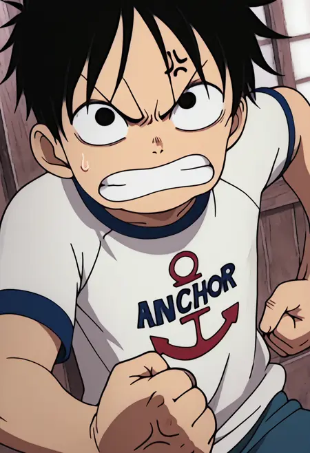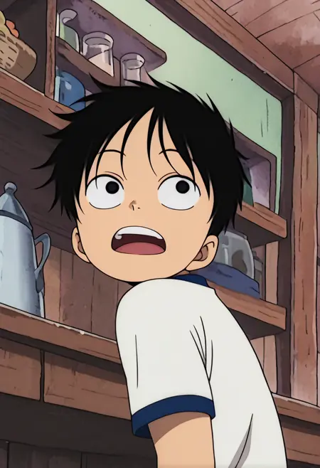 원피스의 어린 루피를 위한 캐릭터 LoRa. 4화 "루피의 과거! 빨간머리 샹크스가 등장한다"의 푸샤 마을 플래시백 장면에서 어린 루피가 샹크스와 그의 해적단과 친구가 되는 과정을 알게 된다. 해당 플래시백 장면의 스크린캡을 기반으로 학습되었다. 그 플래시백에서 루피가 입고 있는 '앵커 셔츠'를 모델에 반영하려 노력했고, 보유한 이미지들을 바탕으로 꽤 잘 나왔다. 이 셔츠를 입은 다른 캐릭터를 생성하는 데에도 사용할 수 있으나, 정확도는 사용하는 체크포인트에 따라 달라진다.