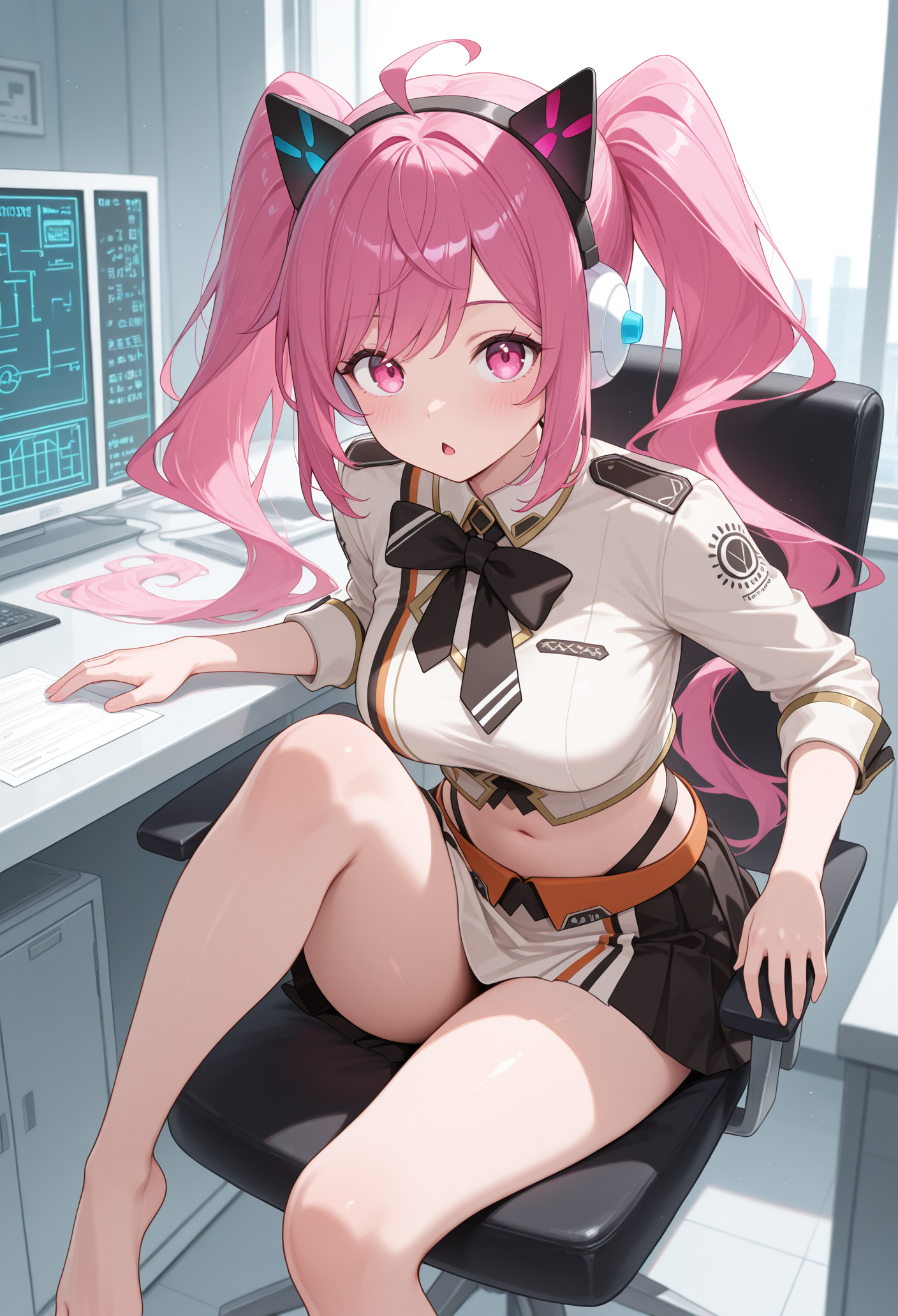頭の装飾はanimal earsで代用してます。ヘッドホンにくっついてるのか、そもそもあれはヘッドホンなのかが分からないのでここら辺のプロンプトは見た目で判断してます。公式絵を見る限りじゃヘッドホンじゃ無さそうですが、ファンアートの一部はヘッドホンなのでどっちでも良いのでは?って判断です。好きにいじってください。