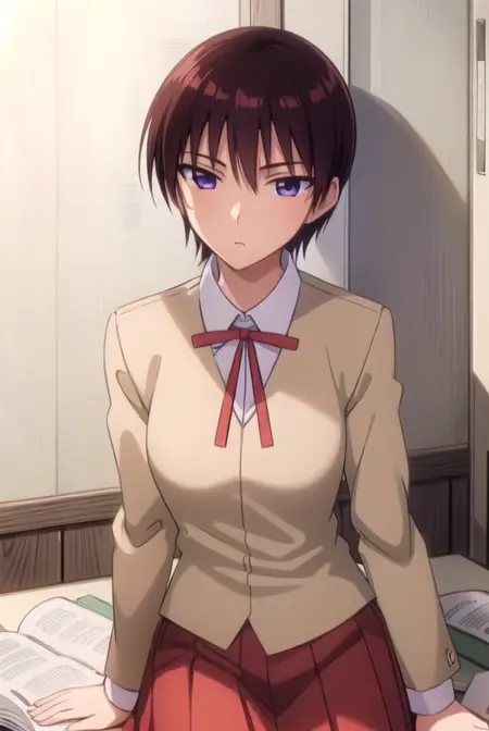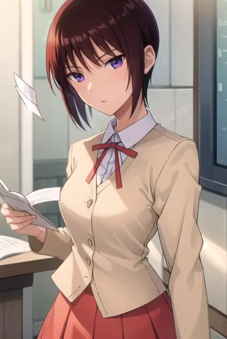 裙子,校服,红裙,丝带,红丝带,衬衫,白衬衫,有领衬衫,西装外套,棕色西装外套,