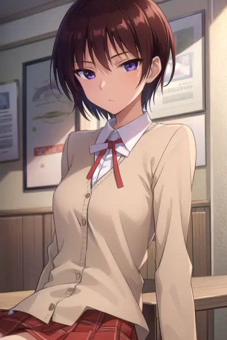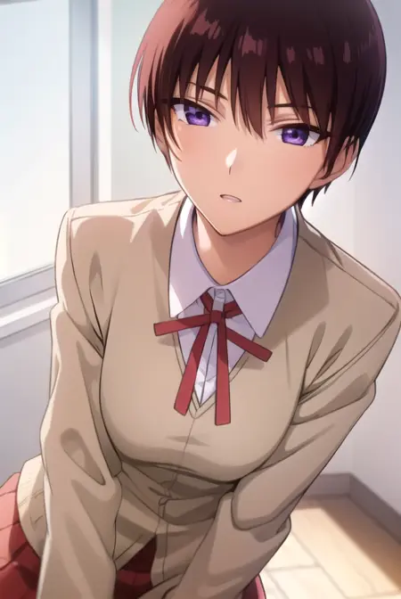 akira takano,极短发,棕色头发,(紫色眼睛:1.1),三白眼,