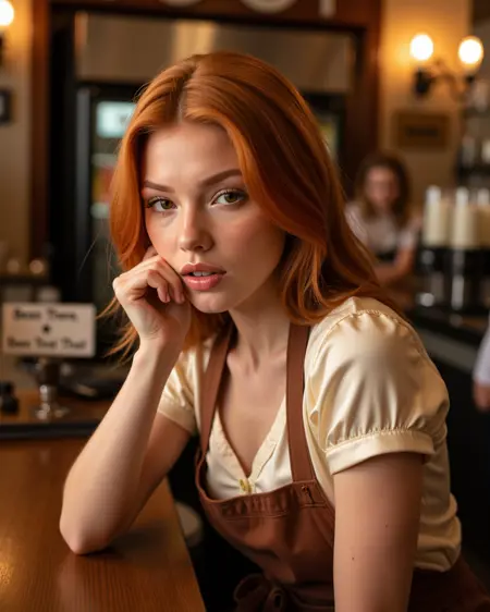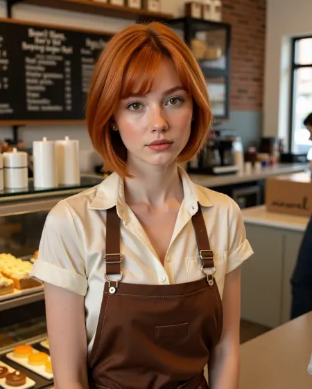 R0ry, 18, short shoulder-length ginger hair, freckles glowing, engaging hazel eyes,
