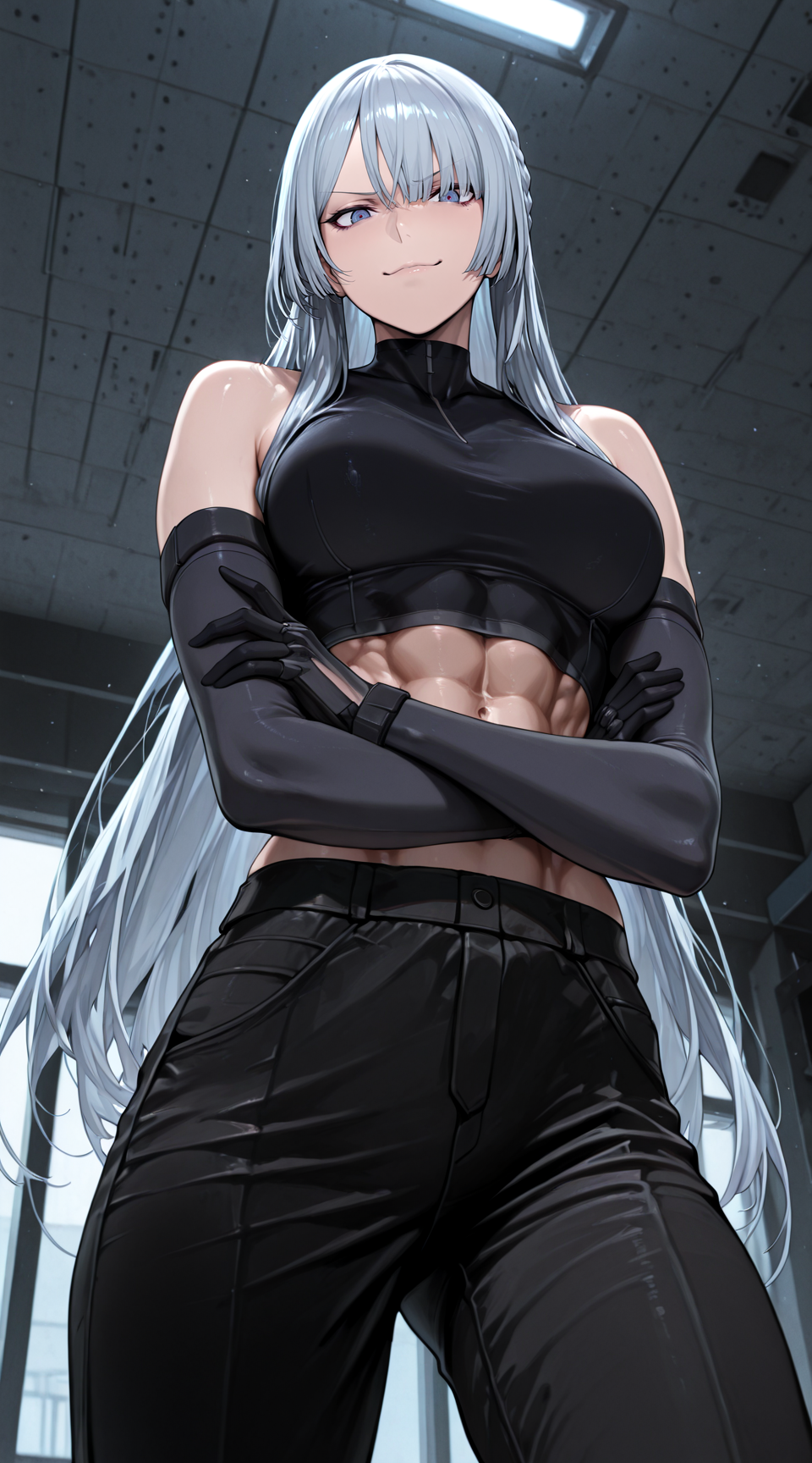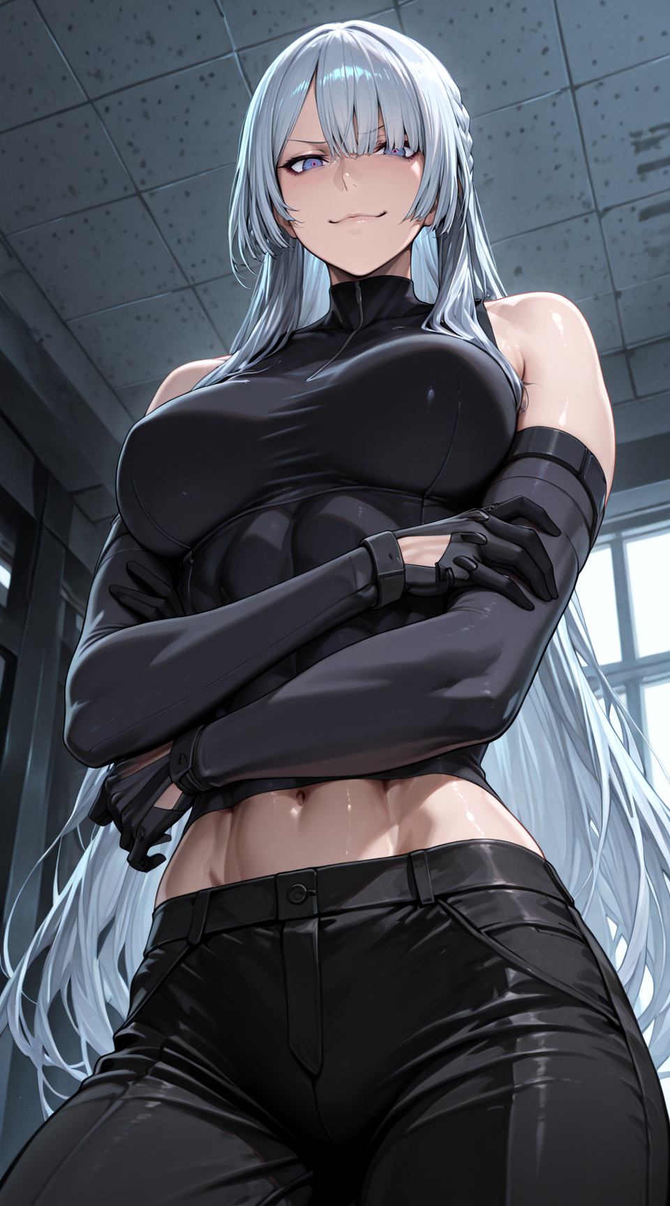• Casual Look : ak15gf, elbow_gloves, black_pants, black_sleeveless_shirt
