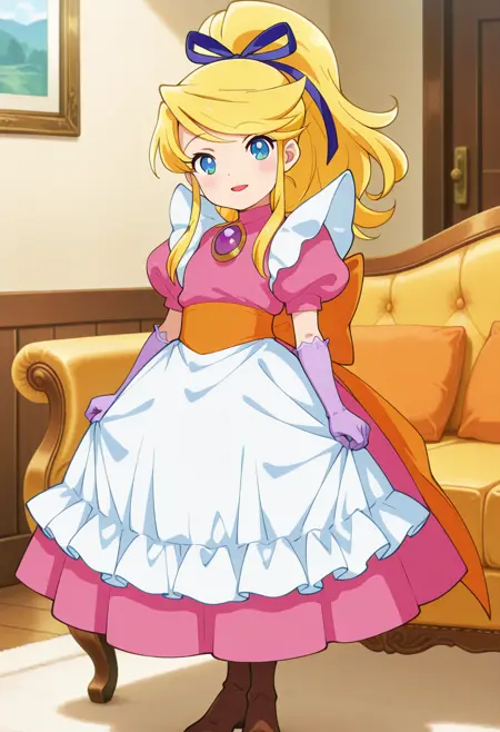 このモデルの難しい点は、ゲーム内での衣装がピンクのドレスである一方、公式アートではオレンジのドレスであり、そもそも利用可能なアートが極めて限られていたことです。何とか仕上げましたが、何か問題があれば教えてください。