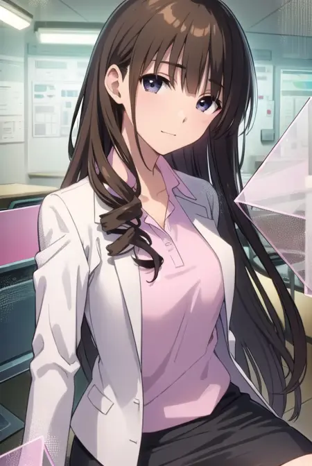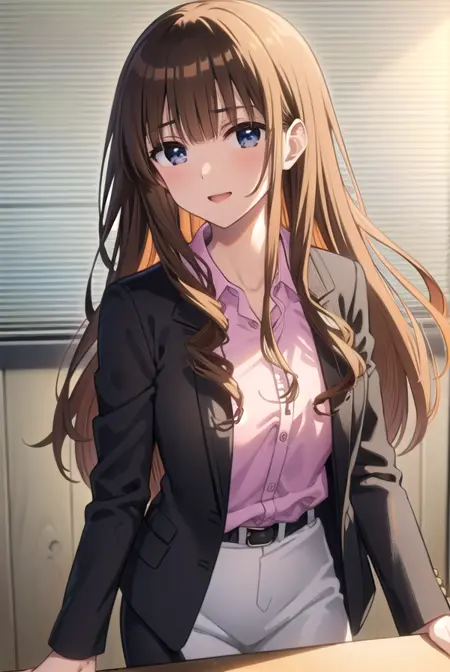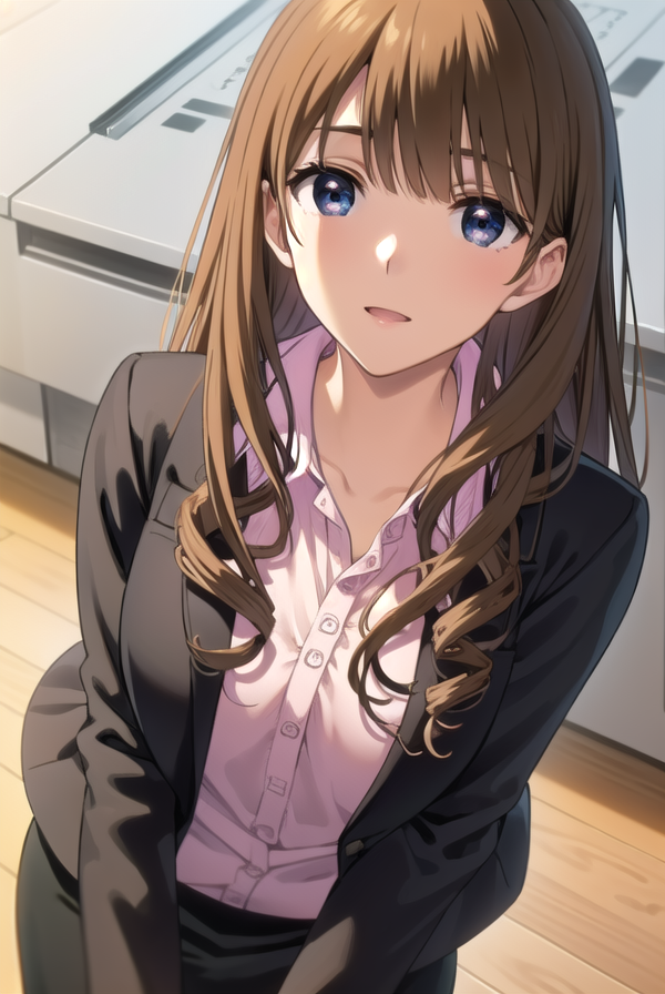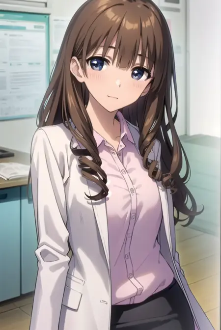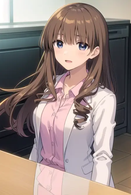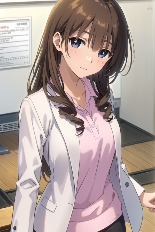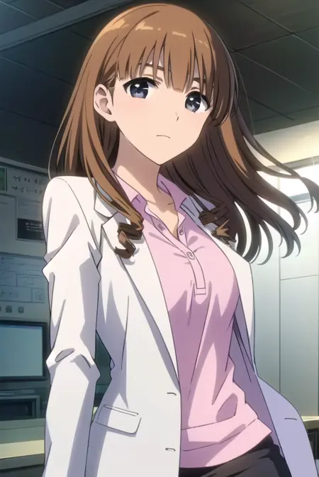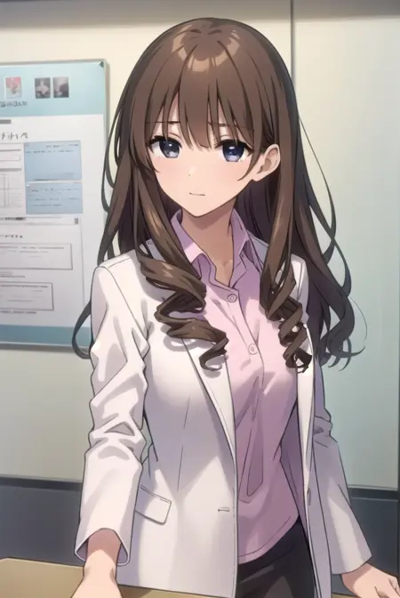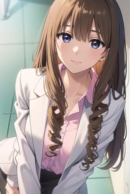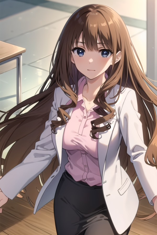 tae anegasaki, 긴 머리, 갈색 머리, (밝은 갈색 머리:1.2), 드릴 머리, (검은 눈:1.5), 앞머리, 둔한 앞머리,