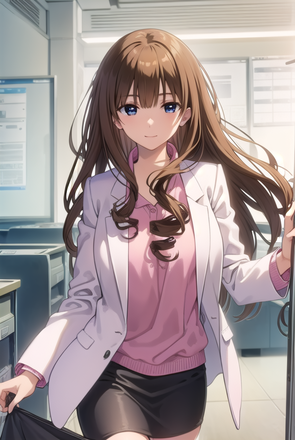 랩코트, 셔츠, (분홍 셔츠:1.2), 칼라 셔츠, 스커트, 연필 스커트, 검은 스커트, (흰색 랩코트:1.2),