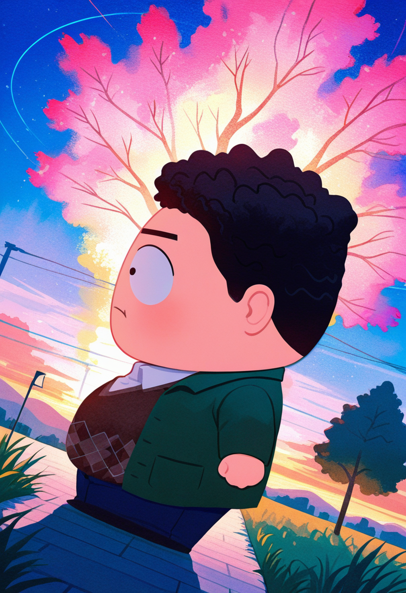 メインタグ: marcus_preston_(south_park), 1boy, short hair, black hair, chubby, chibi:0.5