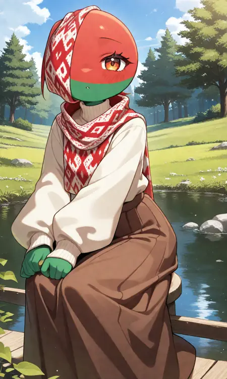 这个白俄罗斯 Countryhumans 有两个版本,基于对国旗上白俄罗斯图案的不同表现方式。