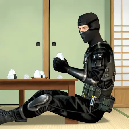 Additional words:mask,black boots,black pants,armor,pouch,greande,black gloves