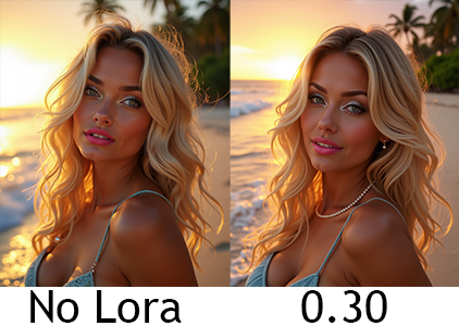 这是一个非常强效的 LoRA —— 当强度接近 1.0 时,效果可能过于虚假或过度磨皮。