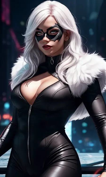 클래식한 블랙캣 옷을 원하신다면, 도미노 마스크에 대한 프롬프트를 포함하세요. 또한 부정적 프롬프트에 입 마스크를 포함해야 합니다. 왜냐하면 AI가 모든 것을 코로나와 관련 지어 생각하기 때문입니다. 어찌 된 일인지 모르겠네요.