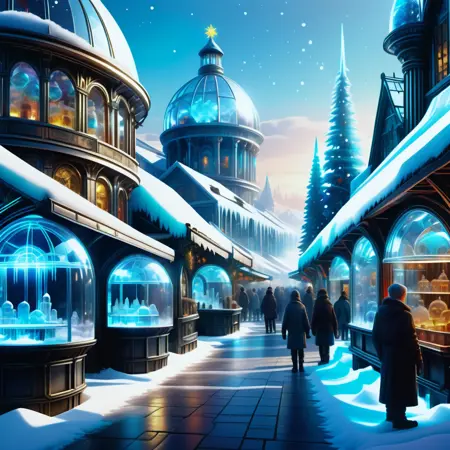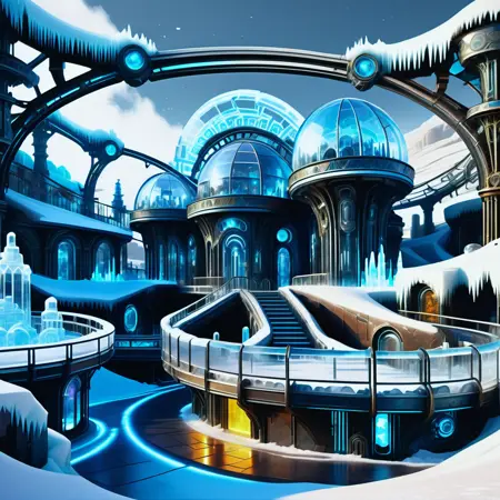 끝없는 겨울에 덮인 세계. 냉혹한 추위와 얼어붙은 바람이 눈으로 뒤덮인 풍경을 휘몰아친다. 이곳의 건축은 생존의 증거다. 투명한 절연 재료들이 주민들을 보호하며, 외부의 얼어붙은 아름다움과 내부에 갇힌 온기 사이에 섬세한 춤을 펼친다. 영원한 얼음의 포옹 속에서 회복력과 혁신이 융합되는 세계에 오신 것을 환영합니다.