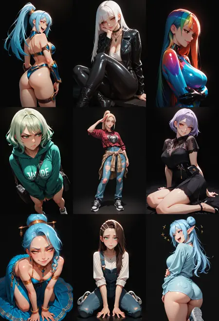 {__basemodel/composition__} : only the camera and pose, to make your character in its native outfit strike a few pose