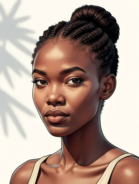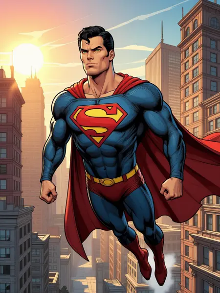 The model brings strong outlines and bold coloring, with a somewhat haphazard bit of cross-hatching inkwork and a tendency to make everything a flat plane if possible.
