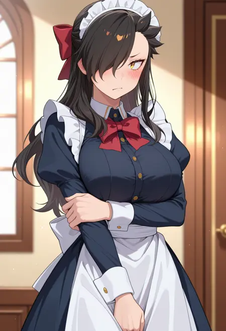 otoko no ko, natsumi schwarz, 黑发, 长发, 发丝遮住一只眼睛, 黄眼, 穿女装, 发饰蝴蝶结