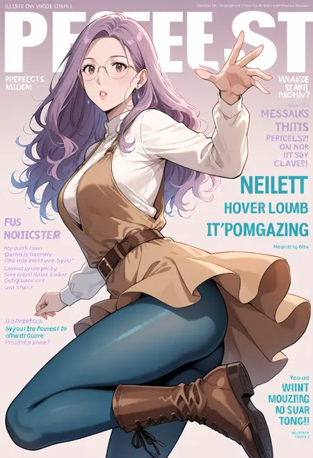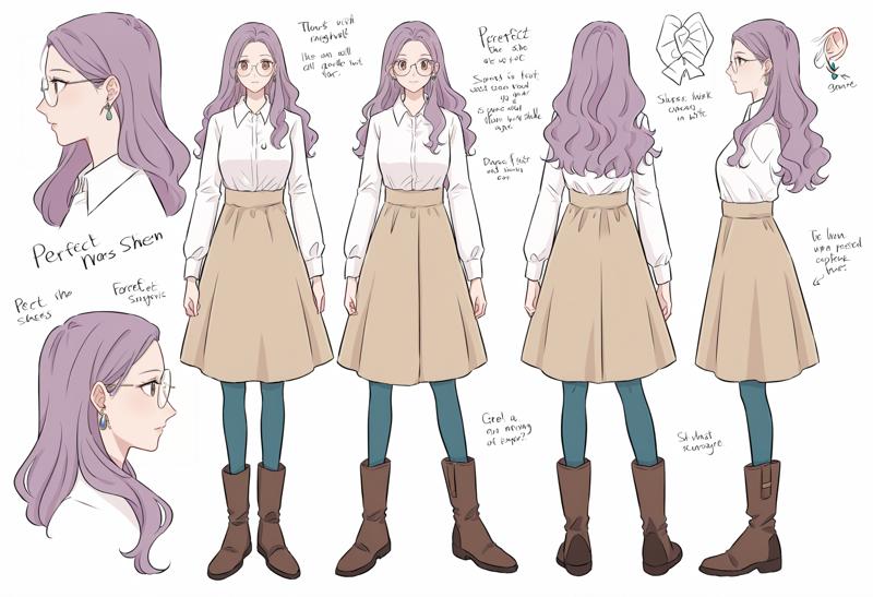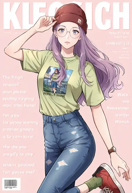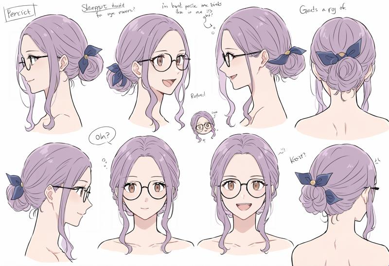 1소녀, 갈색 눈, 안경, 보라색 머리카락, 긴 머리