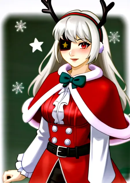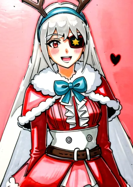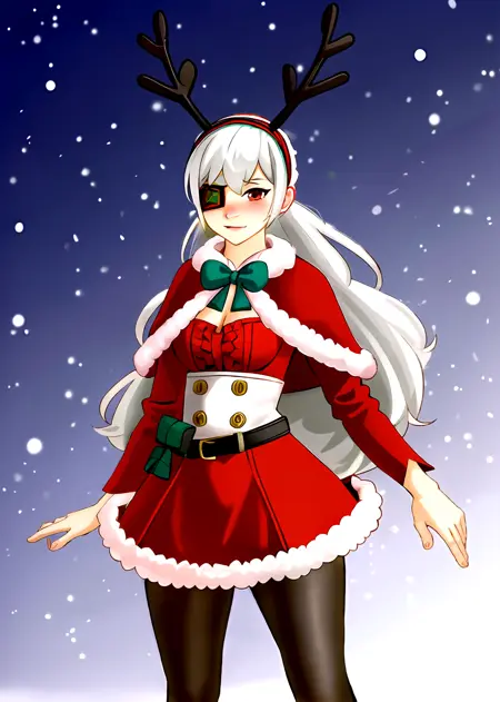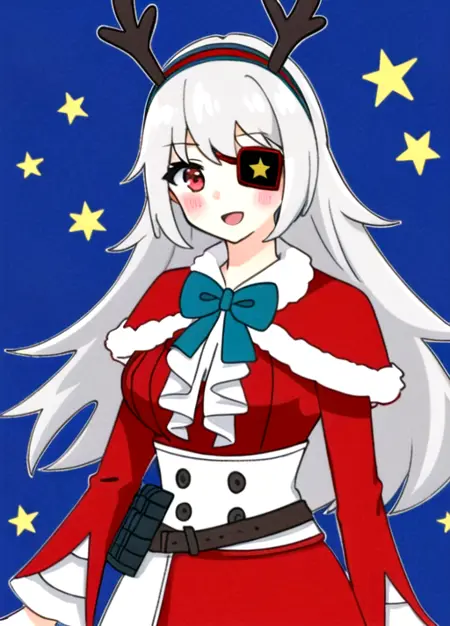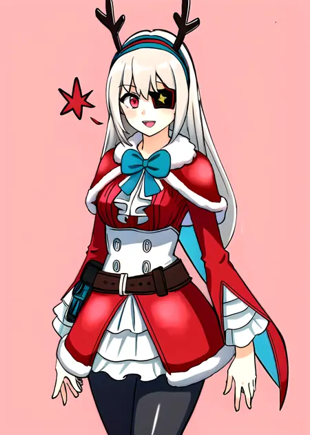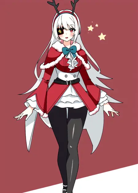 | 训练词汇 | 1girl, solo, christmas, long hair, eyepatch, fur trim, red eyes, santa costume, antlers, capelet, bow, hairband, looking at viewer, white hair, simple background, red capelet, belt, grey hair, smile, fur-trimmed capelet, fake antlers, white background, dress, long sleeves, bangs, skirt, blush, bowtie, closed mouth, upper body, star (symbol), open mouth, frills, reindeer antlers, breasts, standing, blue background, cape, red dress, medium breasts, red skirt, long hair 已复制! 1girl, solo, long hair, eyepatch, red eyes, antlers, hairband, looking at viewer, white hair, grey hair, smile, fake antlers, bangs, blush, closed mouth, upper body, reindeer antlers, standing, medium breasts, long hair, 已复制! |