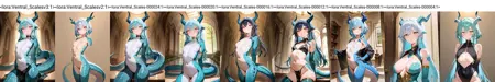 Make sure the scales cover the entire body, applicable to generate Ventral Scales and Dorsal Scales for anthro creatures. In particular, generating Plate Scales for such as snakes and dragons,and Fish Scales for merms.