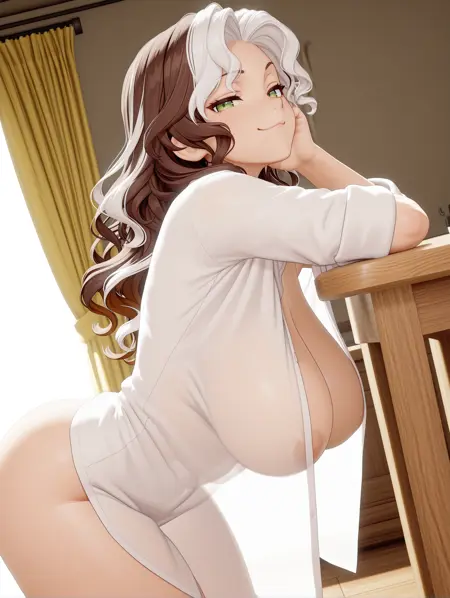 外观:rogu3m4rvelriv4ls,绿色眼睛,白色头发,多色头发,长发,双色头发,棕色头发,波浪发,